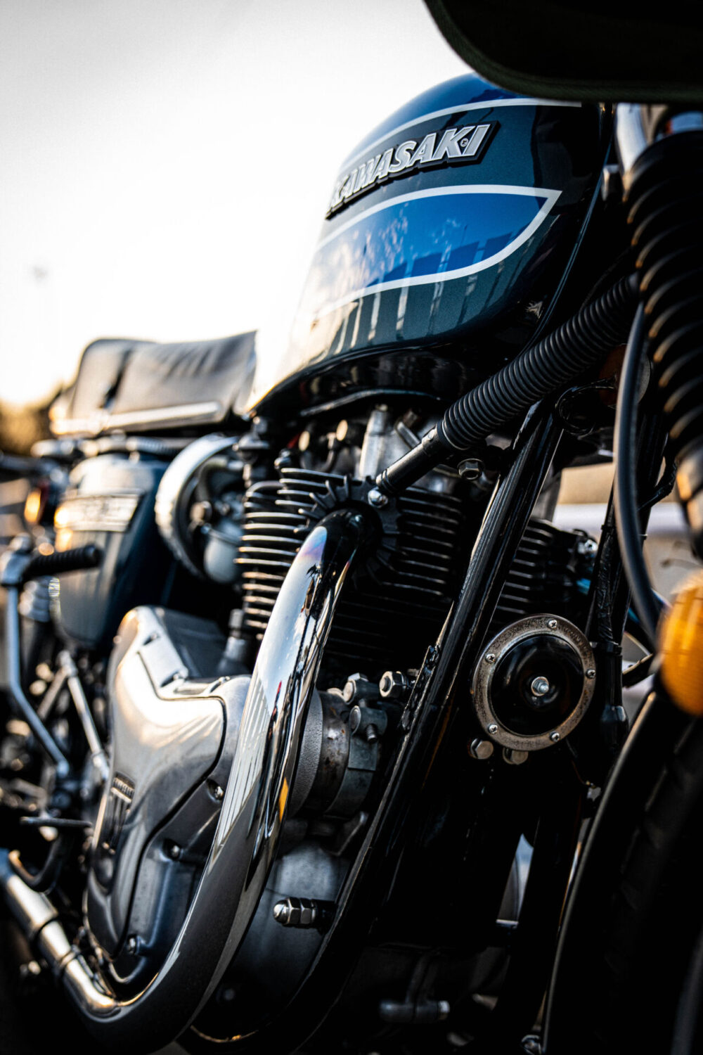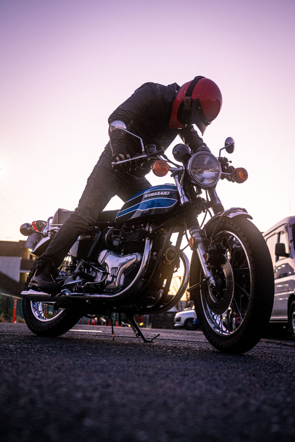 1973年製の日本のオートバイが2022年の公道を走っているのだ。タイムスリップしたかのような不思議な感覚になるのも魅力のひとつ。